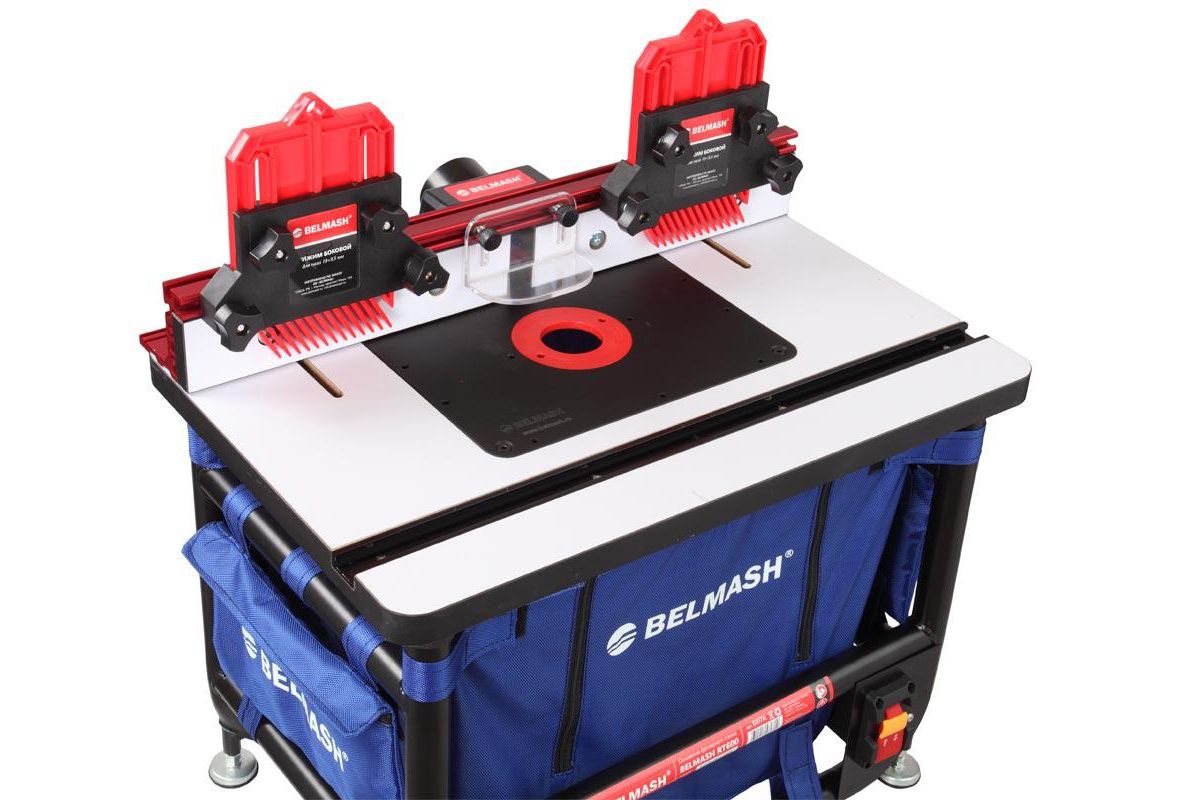 Представляет собой металлический сварной каркас на четырех регулируемых ножках. Сверху крепится рабочий стол со стандартным пазом 19?9,5 мм. На стол устанавливается параллельный упор с патрубком для отвода стружки.
